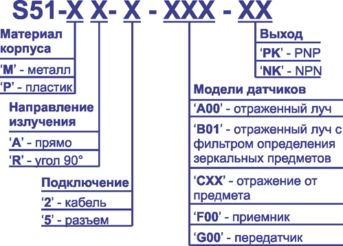 отраженный луч с фильтром определения зеркальных предметов - 0.1-2.0 м (0.1-1.5 м - для исполнения 90°) |