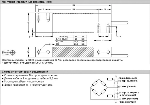 • Схема підключення кабелю: 6ти провідний (AWG 26).