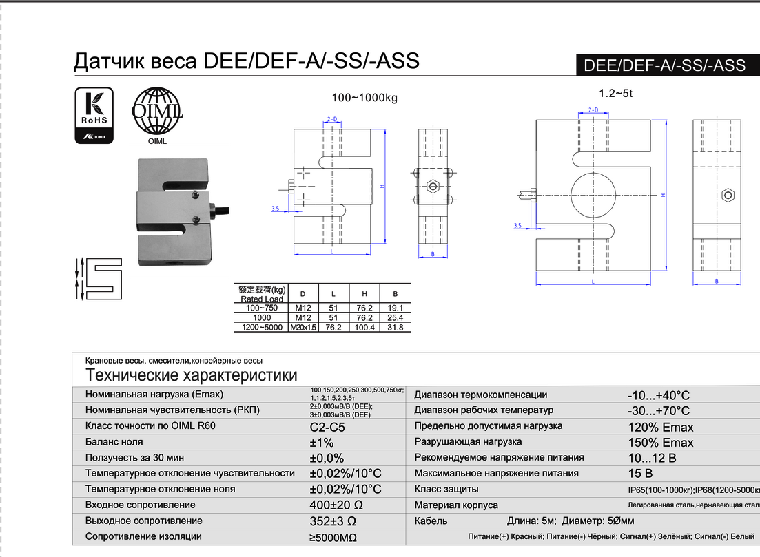 - Номінальна чутливість - (РКП) 2 ± О, О03мВ / В (DEE); 3 ± 0,003мВ / В DEF)