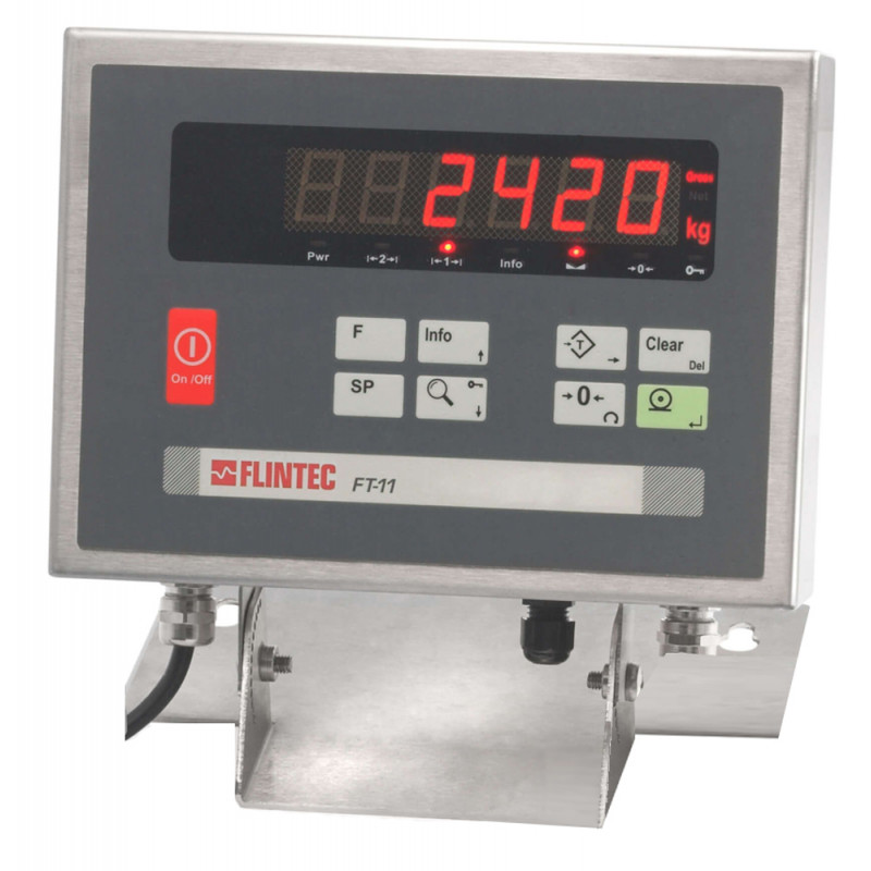 Ваговій індикатор FT-11 - це дуже точний, універсальний прилад для основних процесів зважування, пропонований в різних виконаннях, що відповідають вимогам промисловості для різних умов навколишнього середовища. Прилад схвалений для використання в класі точності III з числом повірочних поділок до 10 000, згідно Момзена 76. У приладі застосований великий 6 цифровий LED дисплей (червоні цифри, висотою 20 мм / панельне виконання - 14 мм) з інформацією про статус. 8 клавішна клавіатура з тактильним зворотним зв'язком для основних функцій зважування. FT-11 з різними опціями інтерфейсу прекрасно підходить для систем зважування та систем контролю процесів.